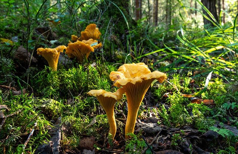 Der Pfifferling ist ziemlich einfach an seiner gelb-orangefarbenen Farbe und an seiner trichterartigen Form zu erkennen. Er hat einen feinen, leicht würzigen Geschmack und wächst häufig in Gruppen. Schaue deshalb immer genauer hin, ob denn nicht vielleicht noch weitere Pfifferlinge in der Nähe sind.